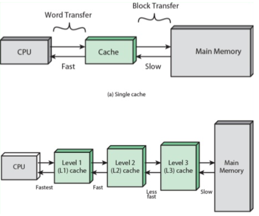 # 캐시 메모리는 실제 메모리와 CPU 사이에서 빠르게 전달을 위해서 미리 데이터들을 저장해두는 좀더 빠른 메모리이다.